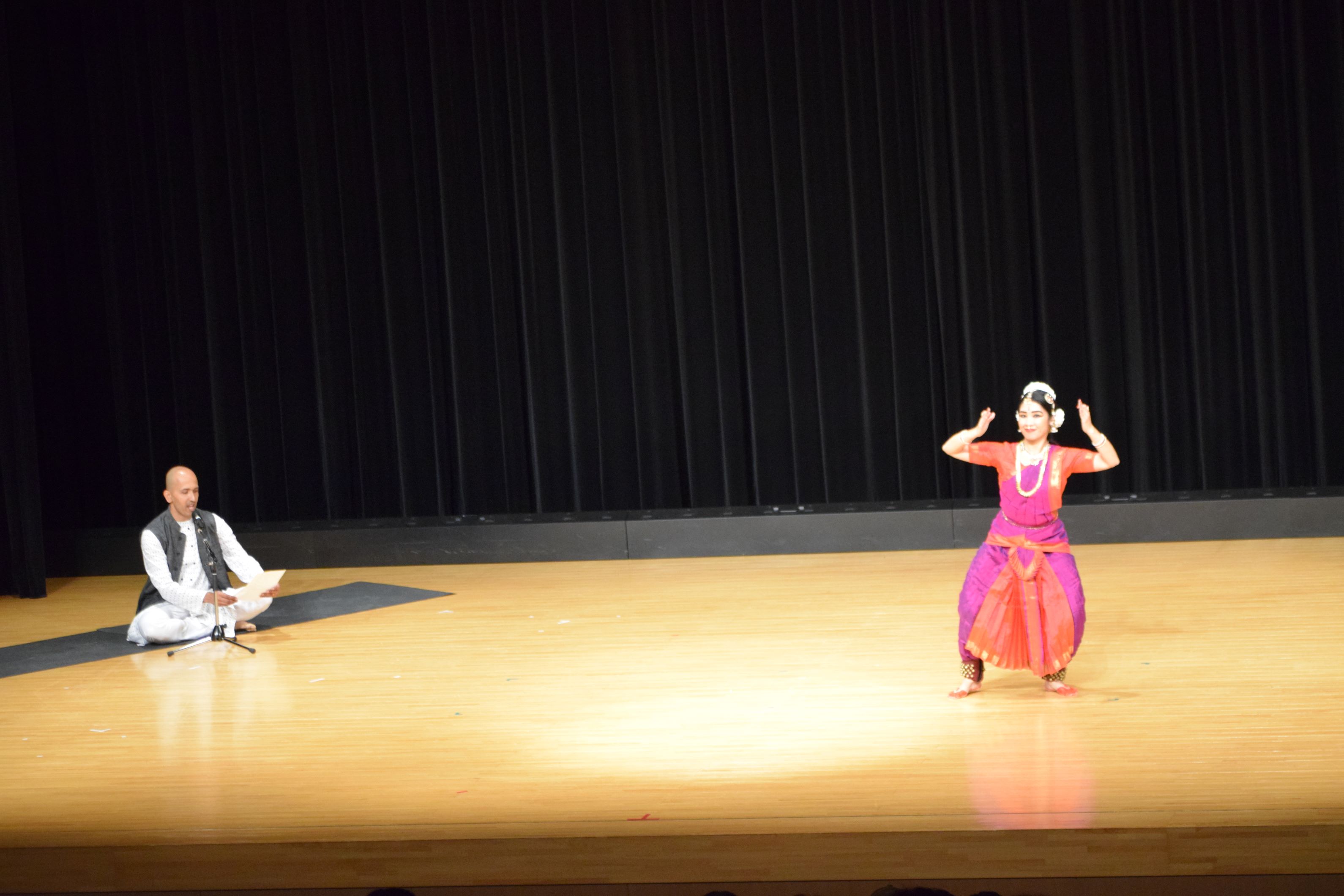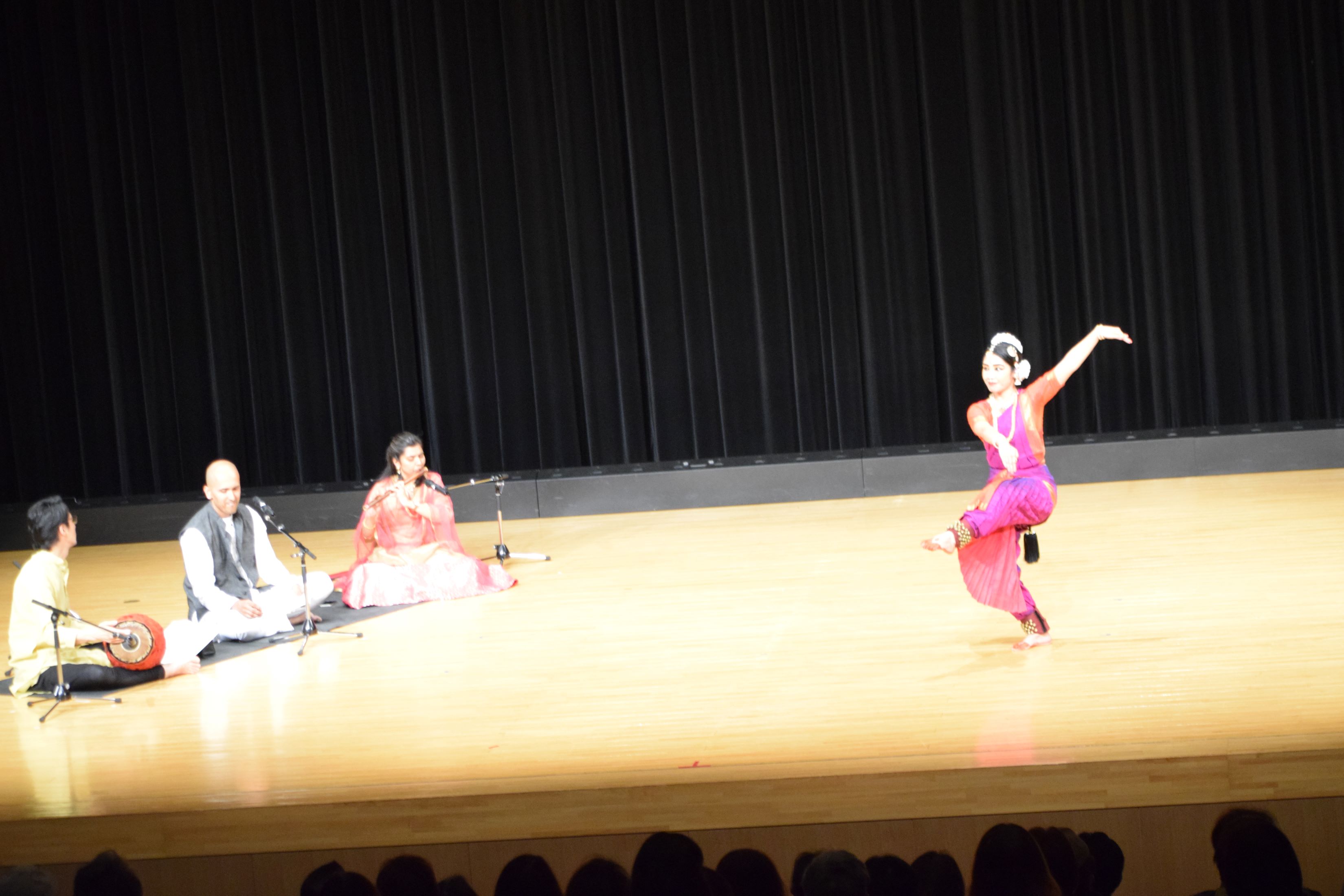 出演は、Maya Shoko さん(南インド舞踊家)、ライルカー アビラム アナンドさん(声楽)、プリヤダルシニ・プラカーシュさん(インドフルート)、竹原幸一さん(ムリダンガム)をお迎えして華やかに開催されました。 ![]() ![]() 第一部のMaya さんの踊りは全身を使って激しく、時に静かに、顔の表情も豊かで喜怒哀楽をコミカルに表現されていました。 ![]() ![]() ライルカー アビラム アナンドさんの低音から高音までのびやかに発声される歌声がホールに響き渡り、Mayaさんの舞踊を増々盛り上げていました。 ![]() ![]() ![]() 第二部は、インド古典楽器の竹のフルートとムリダンガム(太鼓)の演奏です。 プリヤダルシニ・プラカーシュさんの演奏は楽曲によって即興演奏があり、フルートの深く澄んだ音色で、奏者の感情を豊かに表現されて、聴く人の心に届くすばらしい演奏でした。 南インド古典音楽は、曲により5拍子、6拍子、7拍子、8拍子と複雑なリズムを刻みます。 ムリダンガムの複雑なリズムとアクセントにより、聴き手もその音楽の世界に引き込まれていきます。 第三部は、古典楽器の生演奏と舞踊の合同でのステージでした。 ヒンドゥー教の神シヴァの壮大な世界を表現した「 ボーシャンボー 」は、お客様のアンケートでも最も良かったと評判でした。 ![]() ![]() ![]() 今回はその他、コンサート後の出演者とのミニ交流会や、本場チャイとインド小物の販売など、インド感あふれるイベントも開催し大盛況でした。 ![]() ![]() ![]() ![]() ![]()