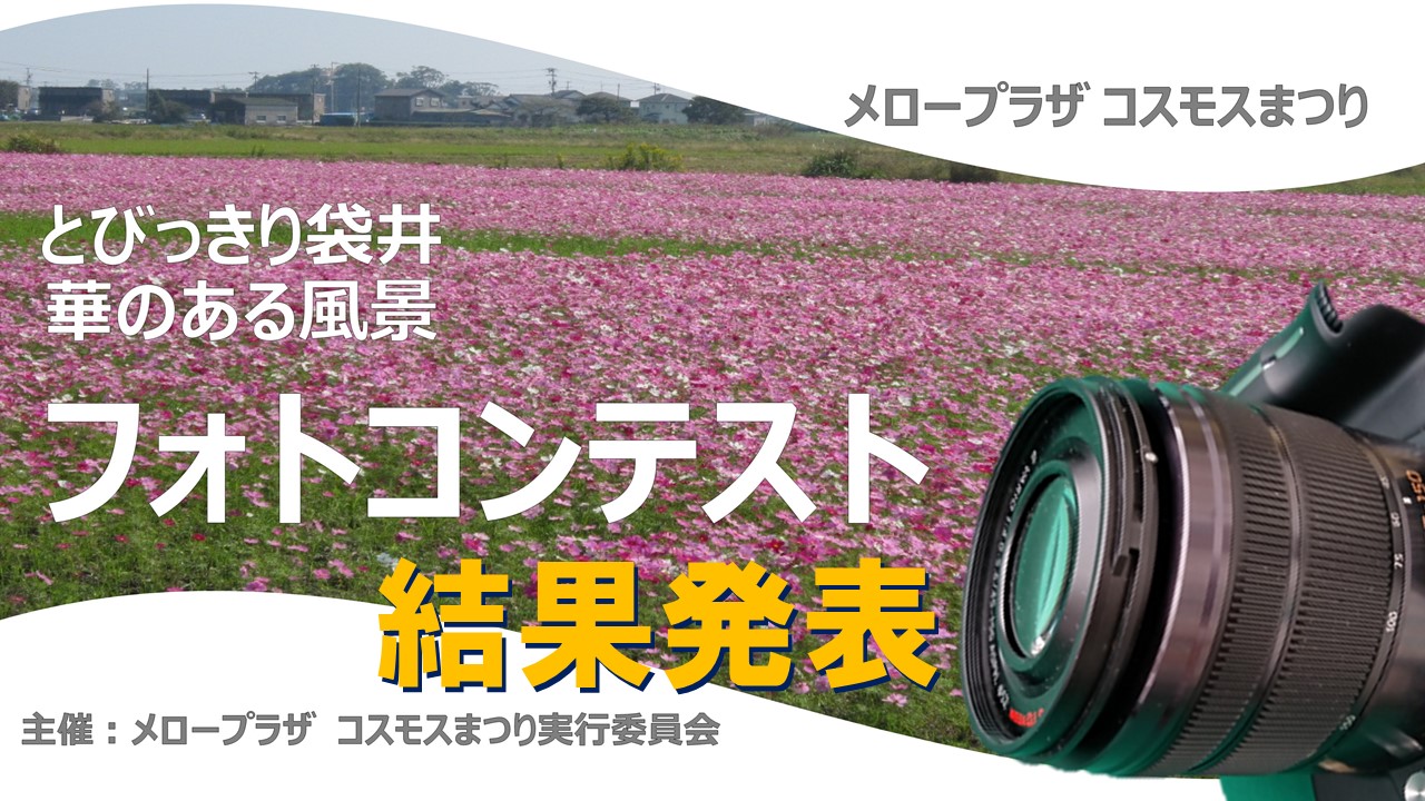 皆様よりたくさんのご応募いただきありがとうございました。 応募作品の中から厳正な審査の上、最優秀賞1作品 優秀賞3作品 入選10作品が決定いたしました。 メロープラザ YouTubeチャンネルにて作品一覧を動画にしましたので是非ご覧ください。 『 メロープラザ コスモスフォトコンテスト 結果発表&出展作品一覧 』 ![]() |