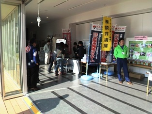 このイベントは、身近なことから『環境』のことを考えてみようということで、館内では様々な市民活動団体や企業の皆さんによる展示や体験コーナーが設けられ、大変盛況でした。 また屋外では、竹を粉にする機会による『竹パウダーづくり』が行われ、出来上がった竹パウダーを来場者に配布し、資源の有効活用への理解を深めていただくようPRに努めていました。