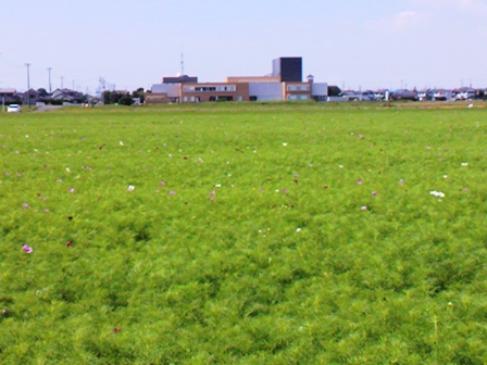 インターンシップではがんばって館を盛りたててくれてありがとうございました。 あれから約1か月が経ちますが、三宅君の植えたコスモスが大きくなってきました。 三宅君が学校に戻った後は職員が交代で水をやったり草取りをしたりして世話しています。 また、グリーンカーテンも終わり、プランターが空いたので、これにもコスモスの種を蒔きました。 暑さもしだいにやわらぎ、ようやく秋の気配が感じられるようになってきました。 11月のふれあい夢市場では、皆さんをコスモスでお出迎えできるよう丹精込めて育て上げたいと思います。 また、実家来ることがあったらコスモスの様子を見に来てください。 三宅君が蒔いた種が10センチ程度にまで成長しています プランターにもコスモスを蒔きました 五十岡の皆さんが蒔いたコスモスは大きく育っています 気の早い花がちらほら咲いていますが咲きそろうのはまだまだ先になりそうです コスモス畑から見たメロープラザは絵になるでしょうね