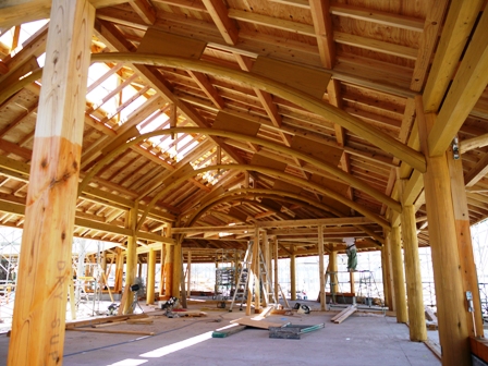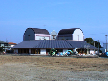 工事期間中は御協力いただき誠にありがとうございました。 浅羽会館の敷地を覆っていた囲いが撤去されたため、浅羽郷土資料館前に建設している近藤記念館がようやく見えるようになりました。 近藤記念館は、郷土発展のため図書館への本の寄贈や、浅羽会館跡地への公園整備にかかる費用を寄附していただいた、大野出身で現在東京にお住まいの近藤健次さんに感謝の気持ちを込め、ギャラリーや研修室などを備えた施設として建設しています。 この施設は、木造平屋建てで、瓦葺の大屋根が目を引きます。 この大屋根を支える梁は、アーチ形をしていて造るには大変手間のかかる代物ですが、確かな強度と、何とも言えない美しいフォルムが特徴です。 今後は、内装工事に移り、10月中には完成する見通しです。 落成式には近藤さんをお招きして、市民の皆さんとお祝いする予定です。 浅羽会館が撤去されきれいに整地されています。 郷土資料館の手前に建設しているのが近藤記念館です。 大きな屋根が特徴的です。 大屋根を支えているのがこのアーチ形の梁です。 こうした造りをした施設は近隣にはなく非常に珍しいとのことです。