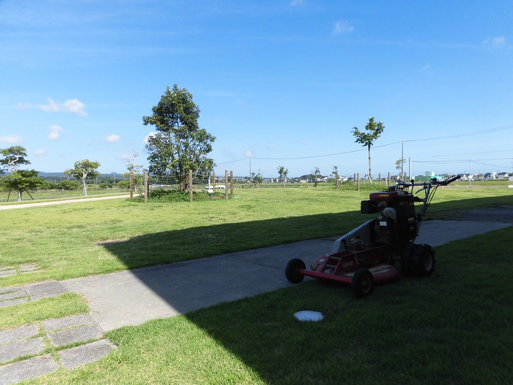 東海地方も梅雨明けし、連日日射しが強くなってきました。たっぷりの雨と、その日射しをあびてぐんぐんと伸びていた芝生を、メロプラサポータークラブの方がきれいに整えてくださいました。