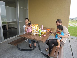 メロープラザの売りである田園風景の中で、とても楽しそうにランチを摂っていました。 お一人は島田市から来られた方。 ゆっくり時が流れ、芝生に囲まれたメロープラザで、これからもお子さんをいっぱい遊ばせてください。 ![]()