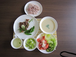 春夏編の「夏野菜を使った洋食」講座でした。 メニューは、 ジャガイモの冷製スープ、 ビーフステーキメートルドテールバター添え、 トマトサラダ、 ブランジュキウィソースと超豪華。 野菜は、講師の川上さんのお宅で採れたもので、新鮮そのものです。 こだわり料理に、受講生のお一人は、「毎回得るものがある」と大満足。 7月は「夏野菜づくし」です。 今から楽しみです。 ![]()