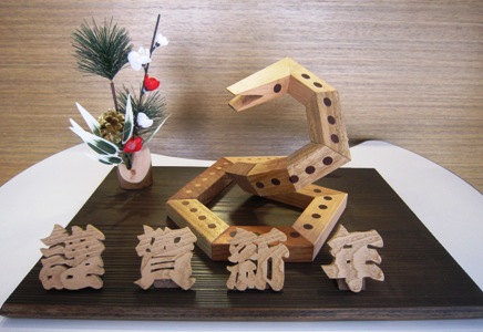 来年の干支「巳」の置物をいただきました。 木製の「巳」です。 早速、管理事務室のカウンターのところに飾らせていただきました。 飛田さん、ありがとうございました。
