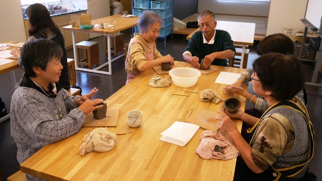 最初の講座は、「陶芸」でした。 8人の受講生の皆さんが、手ひねりで「湯呑み」作りに挑戦しました。 お一人お一人の個性が出た作品が出来上がりました。 自分で作った「湯呑み」で飲むお茶は、きっとおいしいと思います。 そして、夜は、「レザークラフト」講座が始まりました。 順次講座が始まります。 12月以降に開講する「グラスアート」「トールペイント」「よさこい踊り」「セルフエステ」は、まだ受講していただけますので、 興味がある方は、是非、お申込みください。 お待ちしています。
