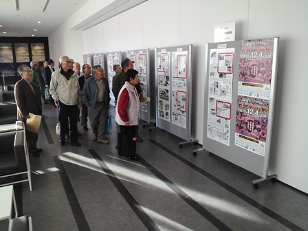 師走の恒例行事となった『しずおか市町対抗駅伝大会』も今年で第11回目を数えます。 来月4日土曜日、午前10時からのスタートを前に、「しずおか市町対抗駅伝大会パネル展」をホワイエにて開催しています。 走者たちの熱き記録と題して行う今回の展示では、第1回目から10回目まで結果を掲載した新聞記事を中心に、当時の激走の模様を振り返ります。 袋井市は、初回大会において、旧浅羽町が町村部優勝を果たすなど、駅伝熱が大変盛んで、14日もメロープラザにおいて、市民の皆さんとの駅伝代表選手たちの壮行会を行いました。 展示後、早速パネル展を御覧になった市民の方からは、「かつての栄冠を取り戻すため、上位入賞に向けて頑張って欲しい。」とか、「子どもから大人までが一つのたすきをつなぐ駅伝には感動がある。悔いの残らぬよう精一杯走って欲しい」などといった声が聞かれ、皆さんの期待も高まりを見せています。