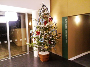 和の空間横のガレリアにクリスマスツリーが登場しました。 南玄関に面したガレリアの吹き抜け部分は7メートル近くあり、非常に開放的な空間です。 この広々とした空間をより良く演出するため、約3メートルの天然モミの木を取り寄せました。 ツリーの近くは森の香りがします。 BGMもクリスマスソングに変えてムードを盛り上げています。 皆さん一度見に来てください。