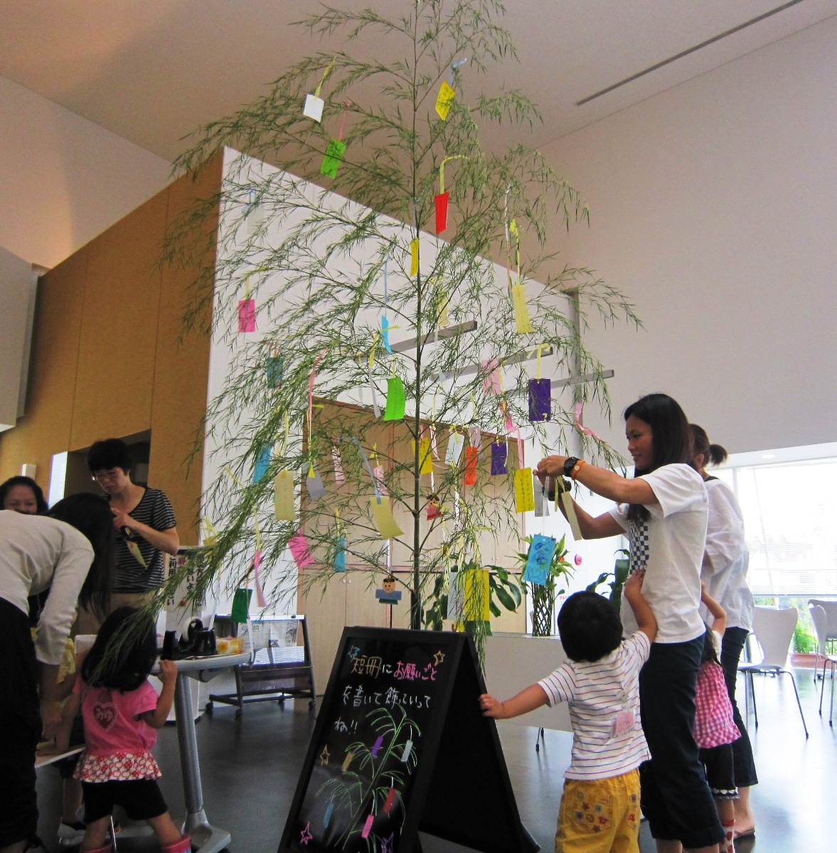そこで、市民ロビーに七夕飾りをしました。 親子交流広場を利用された親子さんを始め、会議室を利用された方々が、 それぞれの願いを書いた短冊や織姫と彦星の飾りなどを笹に飾りました。 もちろん、メロープラザのスタッフも願い事を短冊に書きました。 短冊に願い事を書きたい方は、今日の閉館時間(夜10時)までにお越しください。 皆さんの願い事が叶うといいですね。