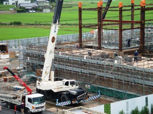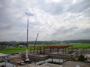 7月も下旬に差しかかりましたが未だ東海地方は梅雨明けせず、今週もまだぐずついた天気が続きそうですが、こうした中現場では、日増しに鉄骨が組まれ、建物周辺の足場の高さも、上へ上へと伸びています。 また、ホール棟外壁の型枠も設置されはじめました。 ホール棟上部に向かって足場が組まれる 木材で型枠を作ってコンクリートを流し込みます