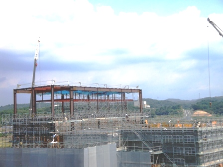 フライタワーの鉄骨も組まれ、施設の規模がようやく分かるようになってきました。
