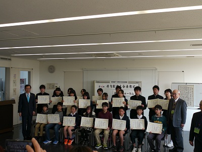 市長賞は小学6年の部では「弟は運動会で一番だ」渡邊颯花さん、中学3年の部では「初夢はこれからしたいことばかり」戸塚結稀さん、一般の部では「農繁期終りを告げるお茶の花」芝田博正さんでした。
