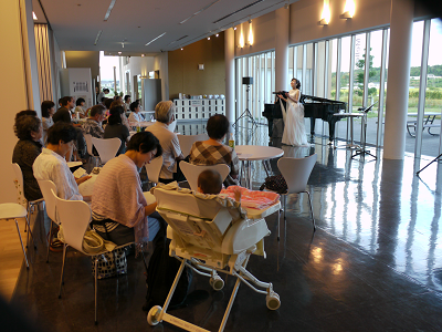 オープニングの「星に願いを」から、金子みすゞの詞による童謡歌曲集、日本、ドイツ、フランス、イタリアの歌曲と続きました。 休憩を挟んだ後半は、皆さん一緒に「しあわせなら手を叩こう」や「大工のきつつきさん」、へと続き、「夕焼け小焼け」をみんなで歌ってフィナーレとなりました。 皆様からは、多くの感動を生んだとのアンケートが寄せられております。 二三のご意見を紹介しますと 「心に響く素敵なコンサートでした。優しい温かな気持ちになりました。」 「本物の音楽が身近で聴けるのは素晴らしいと思う」 「歌と窓の外の景色がマッチし、ロマンチィックな気持ちになりました」 オープニングの「ピノキオ」より 星に願いを ![]() 舞台装置となる借景の田園風景 ![]() 後半のステージ ![]()