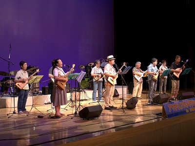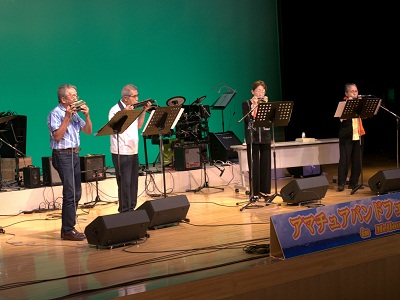 参加の6団体は、「職場の同僚」であったり、「地域の仲良し飲み友達」や今回のフェスティバルのために結成されたグループなどバラエティに富んだ構成で、来場された観客の皆様もプロの演奏とは違った知人・友人・ご近所さんの演奏を親しみを込めた目線で聞き入っていました。 メロープラザを練習場所とする「M・F・G」さん 5回目の出演(皆勤賞) ![]() グループ結成後、初ステージが「アマフェス」だった「いちご会」さん ![]() ステージは、ハラハラドキドキ!でもその興奮が忘れられずについつい5回の出演(皆勤賞)となった「とろみ2」さん ![]() ハーモニカで「クラッシック」から「タンゴ」や「マーチ」など意欲的に挑戦する「ハーモニカフレンズ2012」さん ![]() 「アマフェス」と共に歩み続け、ことし結成5周年記念ディナーショウを予定している「GO GO! Stones」さん ![]() 初参加にもかかわらず魅惑の女性ボーカルで聴衆をさせた実力派「YMバンド」さん ![]()