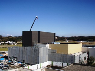 ガレリア工事については、一部にガラスもはめ込まれています。 現在、平成21年12月市議会定例会が開催されており、明日は建設経済委員会の皆さんが、工事現場を視察する予定です。 今週の作業風景 北側の足場が撤去され外観が確認できるように ガレリアの一部にはガラスも入った
