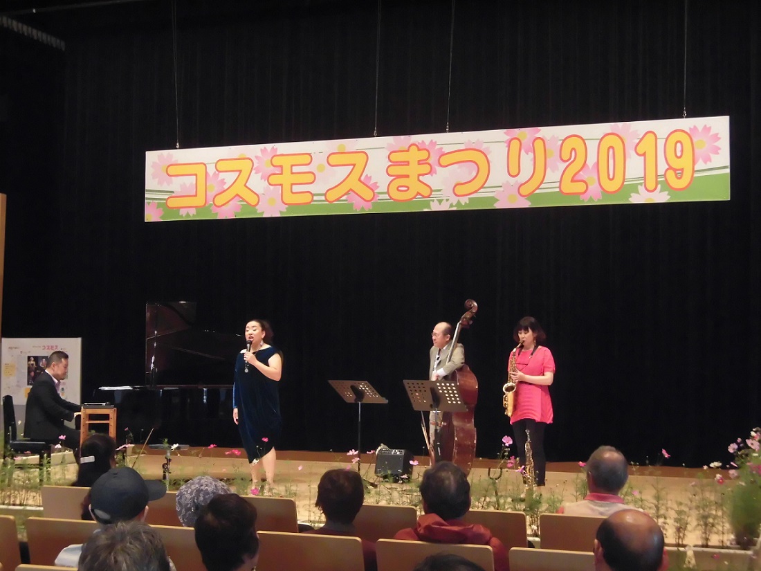 今年は天気の良い日が少なくコスモスの生育に影響が出てしまいましたが、少しでもステージに彩りを加えられるように設置いたしました。