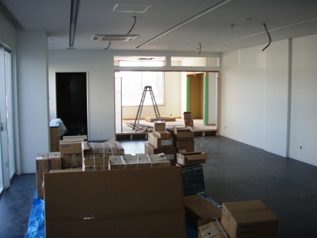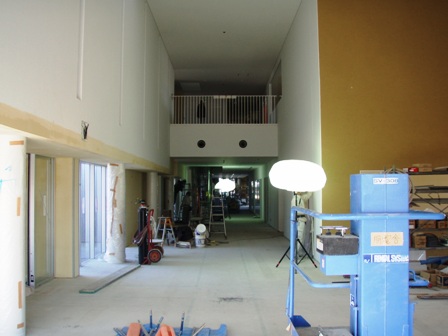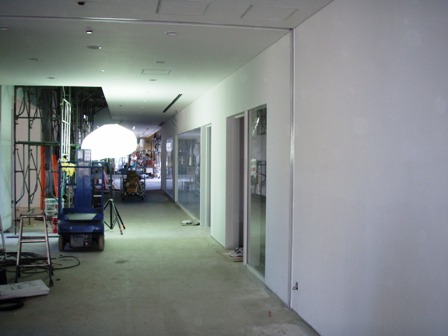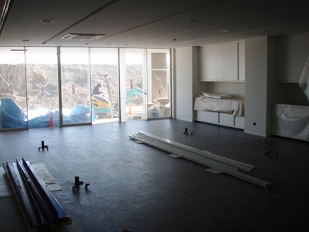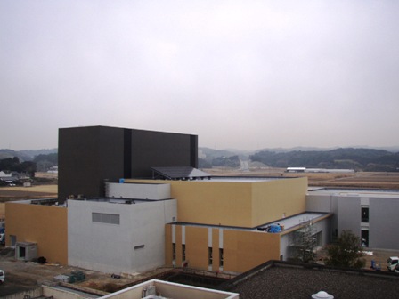 また、内装工事も進み、諸室の作りが確認できるようになって来ましたので、画像を中心にお伝えしようと思います。 本日の現場 フライタワーの手前に見えるのが太陽光発電用のパネル 多機能ホールには可動席用の骨組みが組まれた 南側玄関付近から見たガレリアの様子 ものづくり工房や調理室などが並んだ様子が確認できる イメージパースと比較してみてください こちらはものづくり工房 奧の方に畳室が確認できる 調理室の様子 食工房は床が既に取り付けられている 親子交流広場の入り口付近の様子