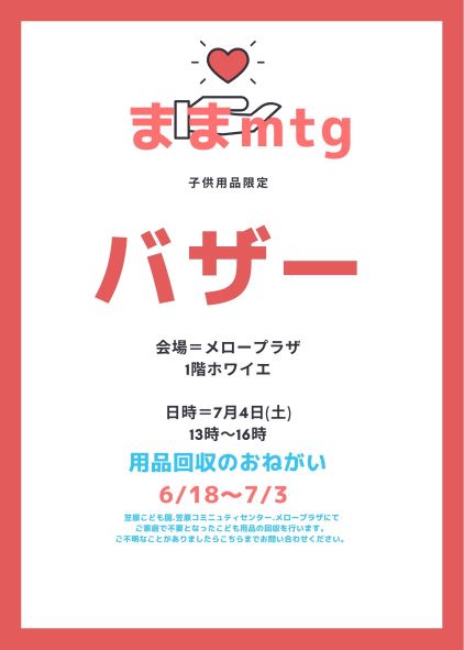 ままmtgさん主催でこども用品のバザーが開催されます。