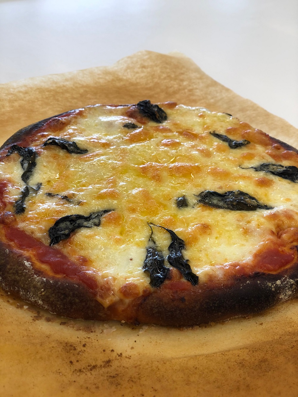 発酵種を前日から仕込んで一晩ねかせて、小麦粉と少しのイーストだけで、じっくり時間をかけて手作りするピザです。