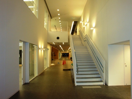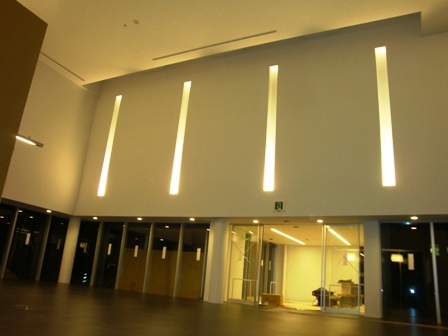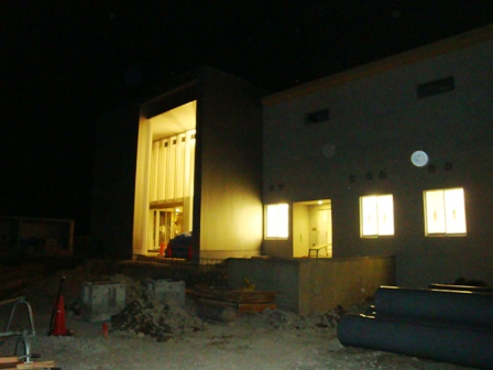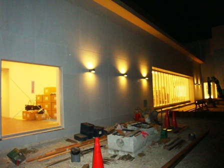 今週からは、日曜日も工事を行います。 夜になると、一部に明かりが灯り始めましたので、今回は夜の現場をお伝えします。 今週の現場 南側玄関付近 ホワイエ付近の屋外の様子、間接照明がおしゃれ 南側玄関付近の吹き抜け部分 南から北に向かって伸びるガレリア 南側玄関付近のホール 窓際の照明が個性的 多機能ホールには床が張られ、可動席が取り付けられた 北側玄関付近から南を向いた時のガレリア 北側玄関付近屋外の様子