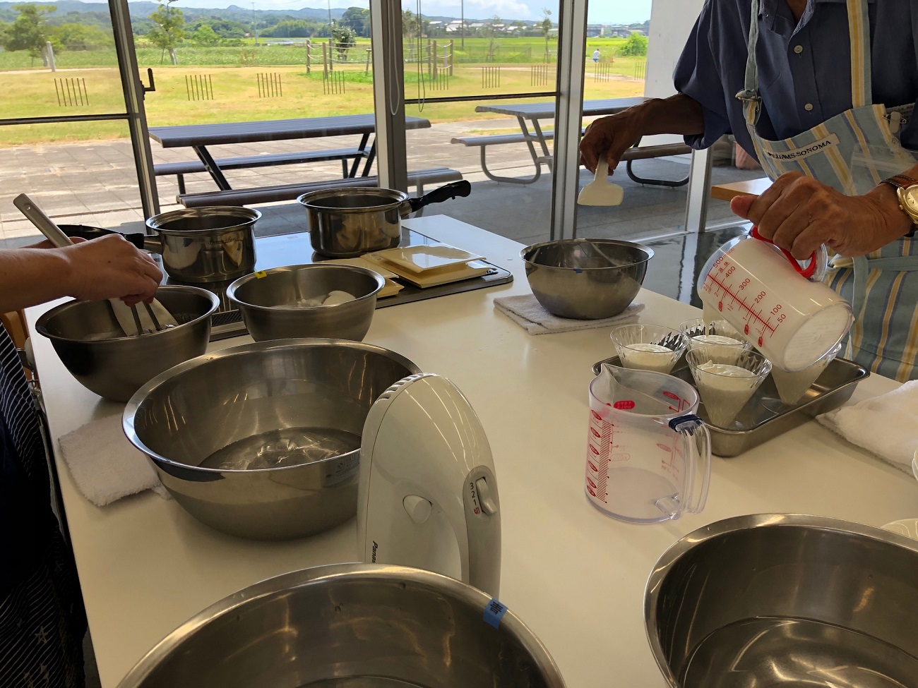 食感の違い、取り扱いの違いを見ていただきながら、冷たいお菓子作りをしていただきました。
