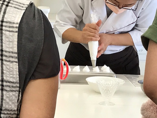 すっきりとしたアクセントの味わいを出すためにグレープフルーツゼリーものせます。本日は、男性も参加でした。