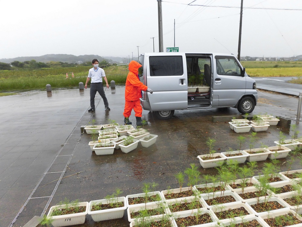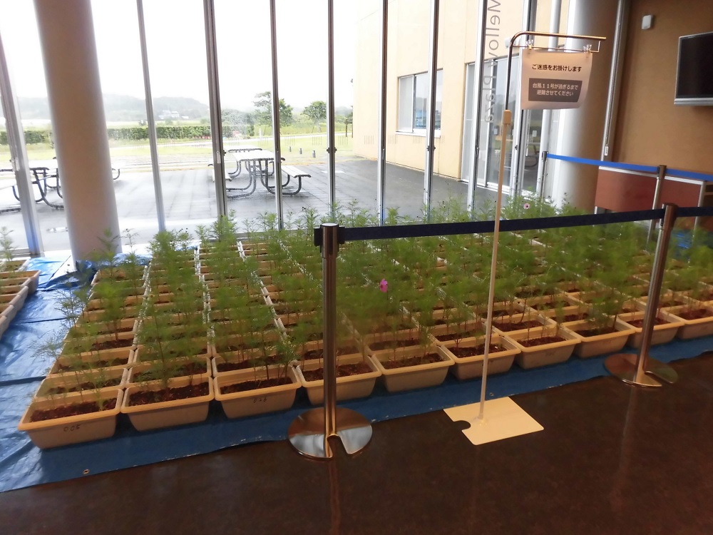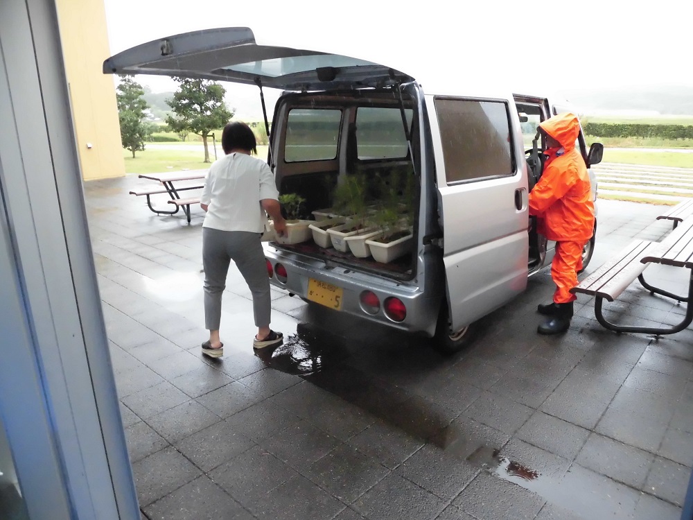 台風14号が近づいてきたため、300鉢のプランターを避難させました。