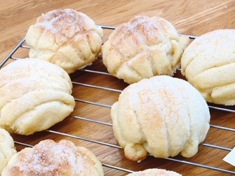 格子柄、シェル柄の2種類のメロンパンを作りました。