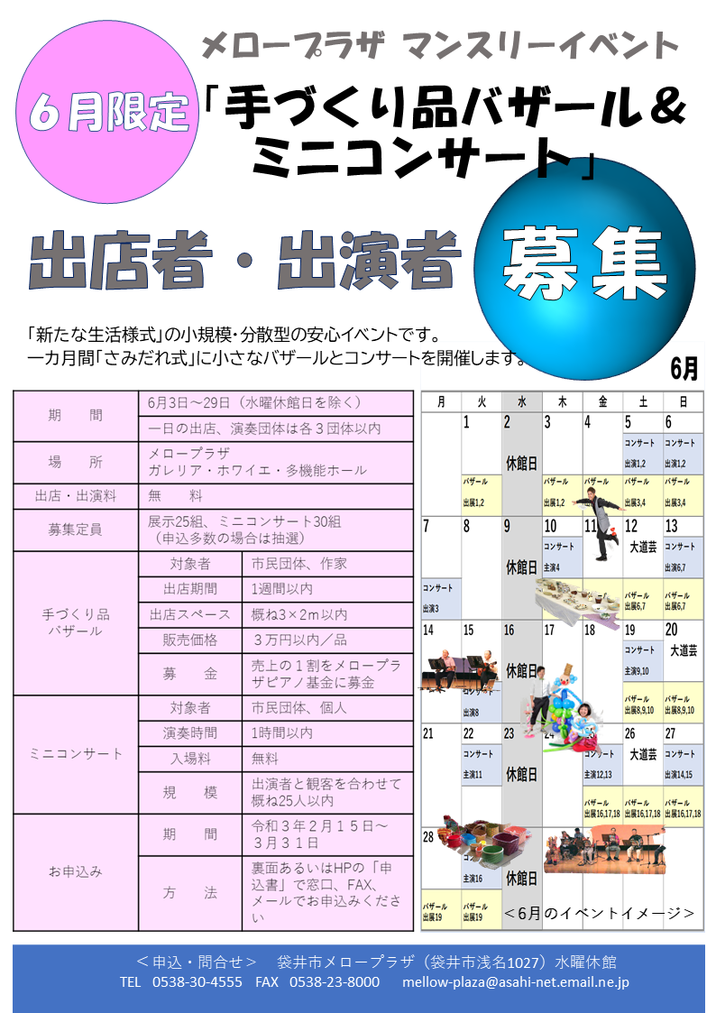 6月に開催するメロープラザマンスリーイベントの出店者・出演者を募集します。