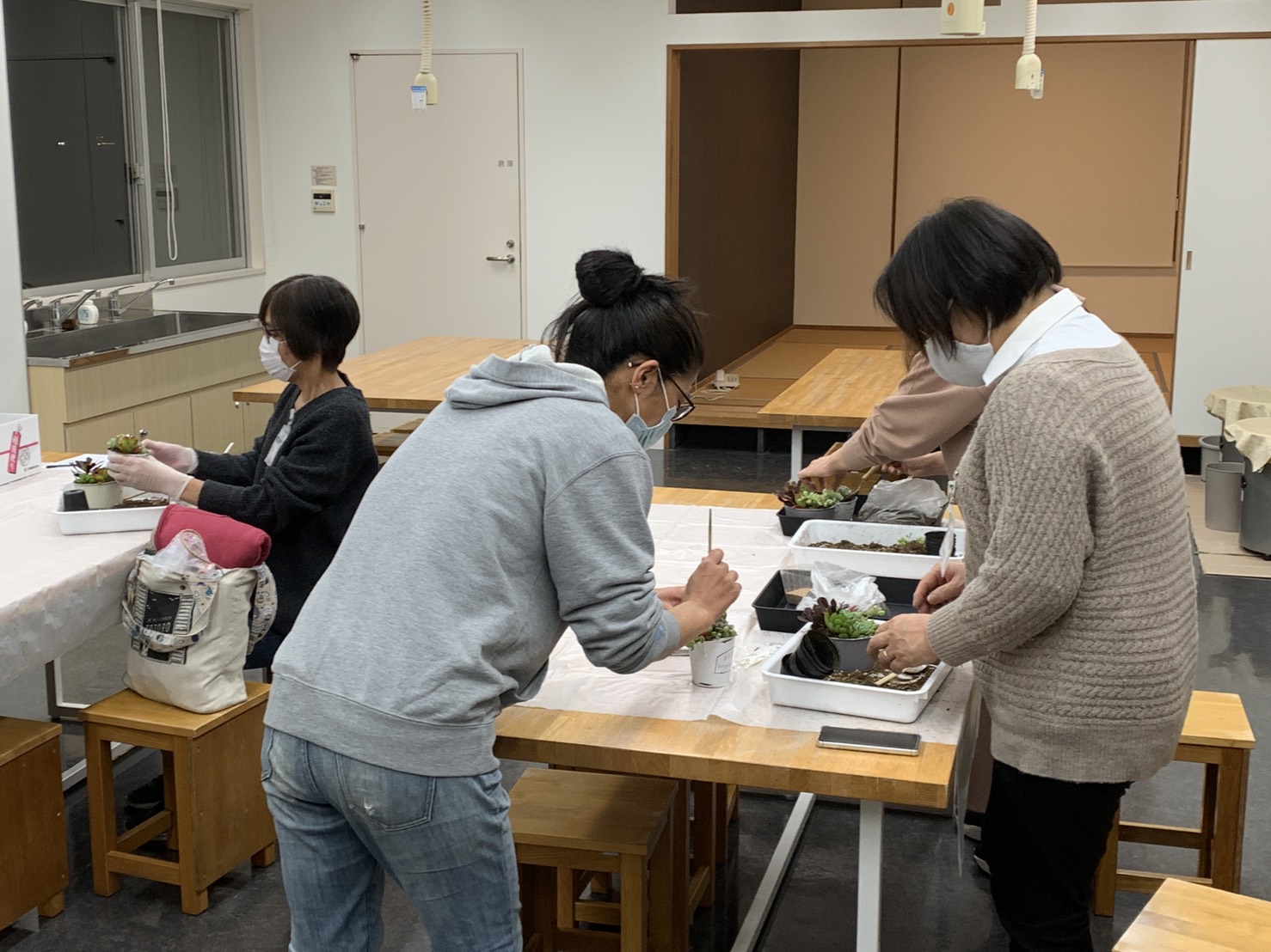 初回の講座は、多肉植物の寄せ植えです。