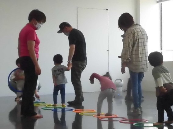1歳半~2歳児の子どもたちが、トランポリンでピョンピョン!!