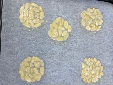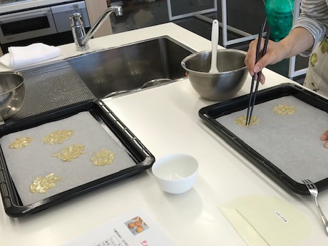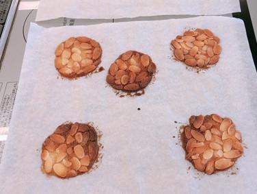 スライスアーモンドを重ならないように一枚一枚広げて、きれいにできました。