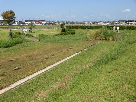 調整池のコスモスが花をつけてきましたので、下草刈りも行いました。