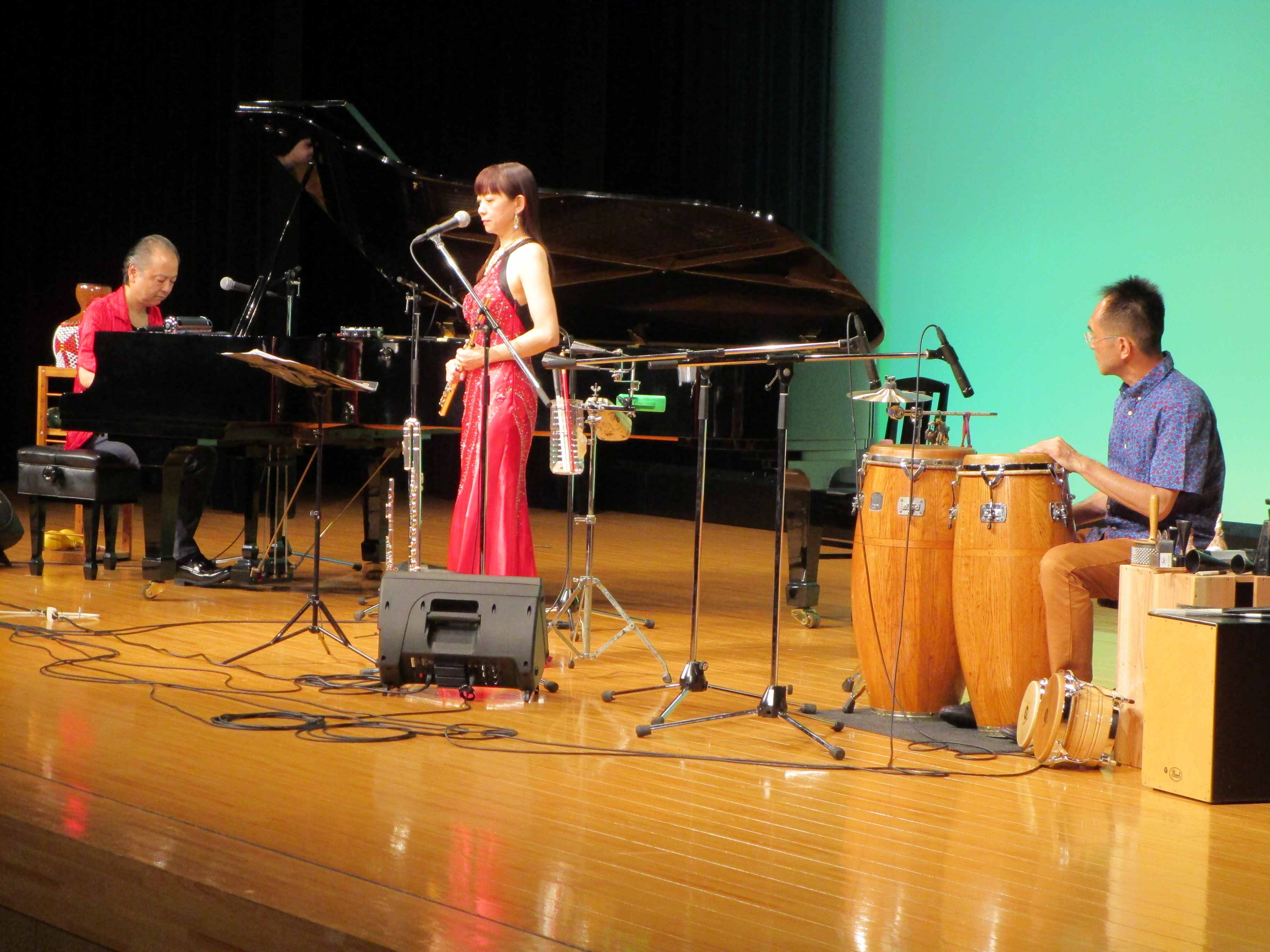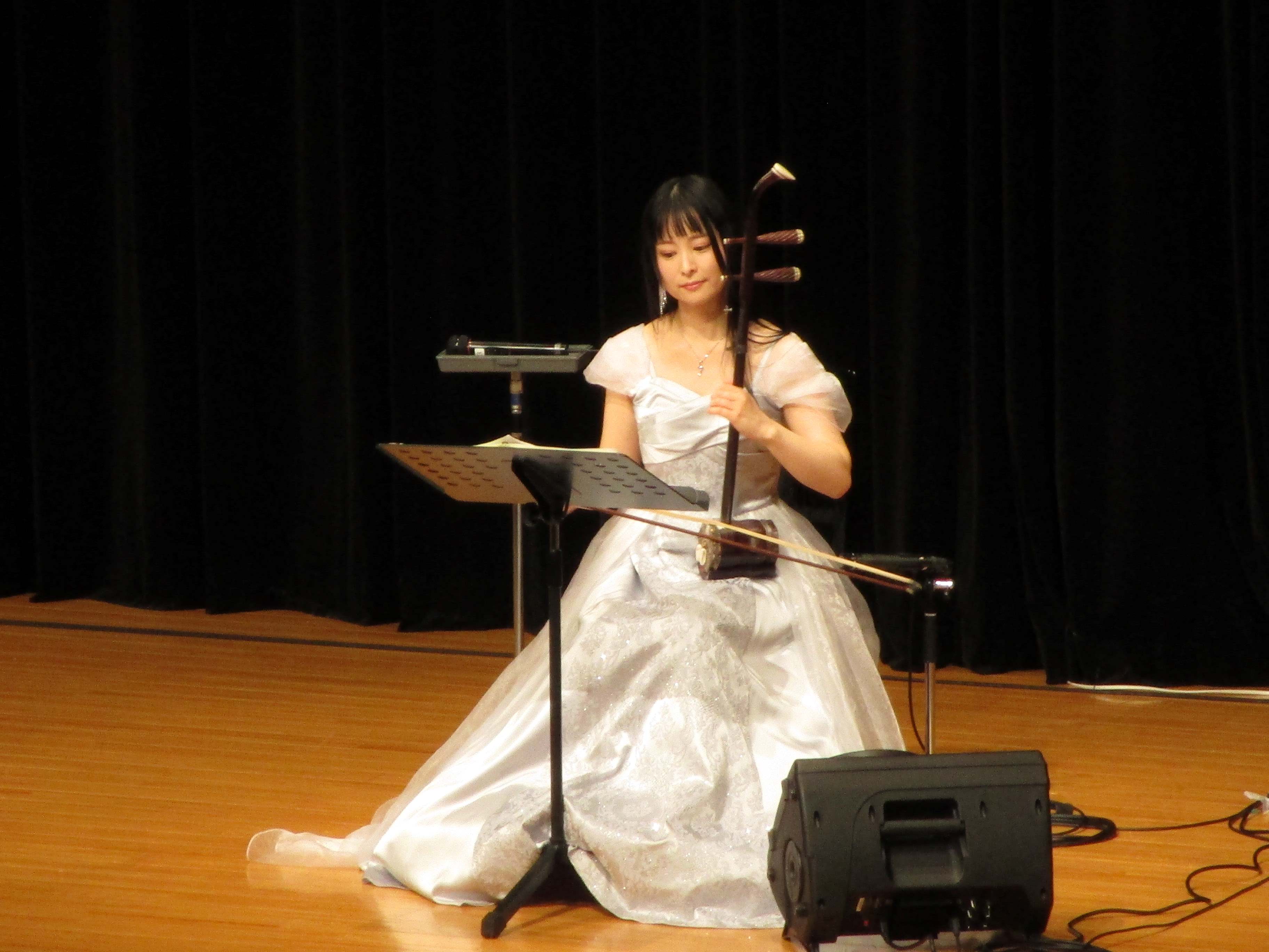 ![]() ![]() オリジナル曲”邂逅(~追憶の徳川家康~)”を始め、ポップス、ジャズ、歌ありでステキなステージでした。 依田さんのうたう藤井風さんの歌に会場もうっとりと聴き入っていました。 第2回(2023.8.20)は、静岡市のジャズピアニスト小島太郎さん、フルーティストかやはら里佳子さん、パーカッション佐野慈一さんのラテンジャズコンサートでした。 ![]() ![]() なぜか知らないうちに体がリズムをとり、ラテンジャズの世界に入り込んでいきました。 聴きなじみのあるポップスも軽快なラテンのリズムとジャジーな編曲で驚きのステージでした。 第3回(2023.11.4)は、焼津市出身の二胡奏者鈴木裕子さんのコンサートでした。 ![]() ![]() 聴きなじみのあるポップス、オリジナル曲や日本の唱歌を旅情豊かに歌い上げ、あたかも蘇州の川面に浮かぶ小舟や川縁の柳を春風がやさしく揺らす、そんな風景がうかんでくるステージでした。 ミニ交流会では、二胡や楽曲の解説、二胡の演奏体験をしていただき、最後までにこやかで親しみやすい魅力あふれる鈴木裕子さんでした。 第4回(2024.2.25)は、ピアニスト田中亜希子さん、フルーティスト大川美南さんのデュオローグによるクラシックコンサートでした。 ![]() ![]() お二人ともに静岡県文化財団グランシップ登録アーティストであり、演奏家、音楽講師として活躍をされています。 聴きなじみのあるクラシックの楽曲から、あかとんぼ、この道、荒城の月など、幅広い楽曲を演奏をして頂きました。 デュオローグとは、対話という意味があり、お二人の演奏は、ピアノとフルートがまるで対話をしているかのようなステキなステージでした。 令和6年度は、5月からホール天井の改修工事により、8月と11月開催のワンコインコンサートは会場をガレリアに変えてお届けいたします。 定員は30~50名と少なくなりますが、楽しい企画など予定しておりますので、ワンコインコンサートファンの皆様のみならず、「初めてだけど行ってみようかな?」と思っていただけますよう、スタッフ一同がんばりますので、是非お越しいただければ幸いです。