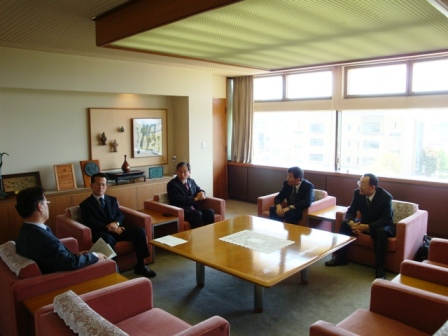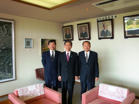 窪野館長 市長 和出チーフ 平成22年3月1日から31日までの期間で、柔軟な企画力と経営感覚に優れた館長とスタッフを募集したところ、多数のご応募をいただき、厳選なる審査の結果、館長は窪野敏(くぼのさとし)さんに、スタッフは和出富美男(わでふみお)さんに決定しました。 お二人とも、民間での経験を生かし、郷土の発展に尽くしたいという熱き思いを胸に、自分自身の新たな挑戦の場としてメロープラザを選んだとのことです。 本日は記念すべき初出勤ということで、朝から市長さん池野副市長さんを交え今後の館の運営について話しました。 これで体制も整ったことから、5月16日の開館に向けて、メロープラザがいよいよ始動します。 今後の館の運営について語りました