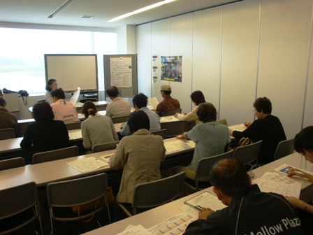 プロ顔負けの機材や館内で唯一ガス器具を使用することから、しっかりと使用方法を学習し、正しく安全に利用する必要があります。 このため、メロープラザの市民スタッフであり、市内各地で味噌づくり教室を行っている寺下恵美子さんとご主人の伸二さんが講師となって講習会を開催しました。 今日は、雨の中15人の方がお見えくださり、熱心に講師の話に耳を傾けていました。 今日は講義が中心でしたが、次回は実技を交えた講習会を開催したいと思います。 会議室1でお話を聞いた後、食工房で機器の操作を確認しました ![]() 伸二さん作成してくださいました