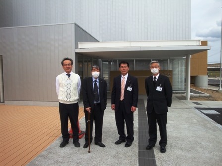 理事は建設当初から、支所長と課長は2年間にわたり施設づくりを支えてくださいました。 皆さんの意志を受け継ぎ、魂のこもった市民に喜ばれる施設とします。 左から寺田課長、金原理事、小島支所長、杉山広域行政組合事務局長(前建築住宅課長) 最後に金原理事の奥さんにもメロープラザをご覧いただきました