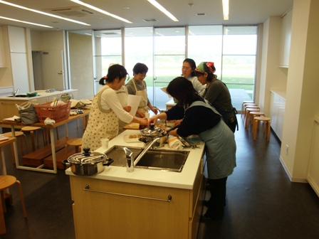 おもてなしプロジェクトで調理室を使ってデモンストレーションを行う皆さんが今日は集まり、