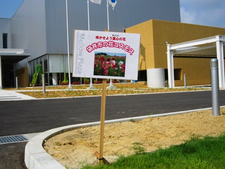 今日は、先日コスモスの種をまいた場所にPR看板を設置しました。