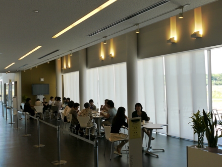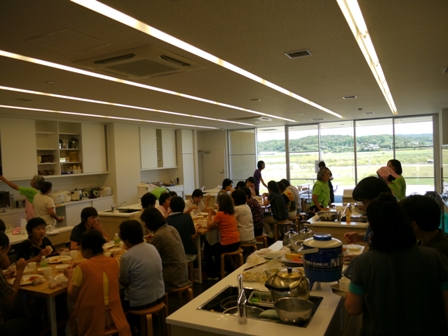 朝早くから100人を超える皆さんが集まり、午前中はメロープラザや浅羽保健センターの調理室を利用し、10地区に分かれて自慢の試食品作りに取り組みました。 お昼近くになると館内は美味しいそうなに包まれ、お腹がいっぺんにすいてしまいました。 お昼時は、ランチバイキングということで、めいめい大皿に好きな料理を取り、ガレリヤやホワイエで楽しく試食していました。 皆さんの笑顔や笑い声にあふれ館内はいっぺんに華やぎました。 午後は、会議室3で西部保健所の方をお招きして「食品成分表」の講習会が行われました。 食推協の皆さんは、こうした講習会や実習などを行い、食を通じた健康づくりを市民に広める活動をしています。 こうした皆さんの活動が、袋井市を日本一健康文化都市に導いてくれていることを強く感じました。 暑い中お疲れ様でした。 またの御来館お待ちしております。 テーブル一面に素敵なお料理が並んでします テーブルクロスもお洒落!! 調理室も満員御礼です ガレリアではちょっと優雅なお食事タイムです 管理事務室にも差し入れてもらいました 彩りも豊かでどれも美味しくお腹いっぱいです