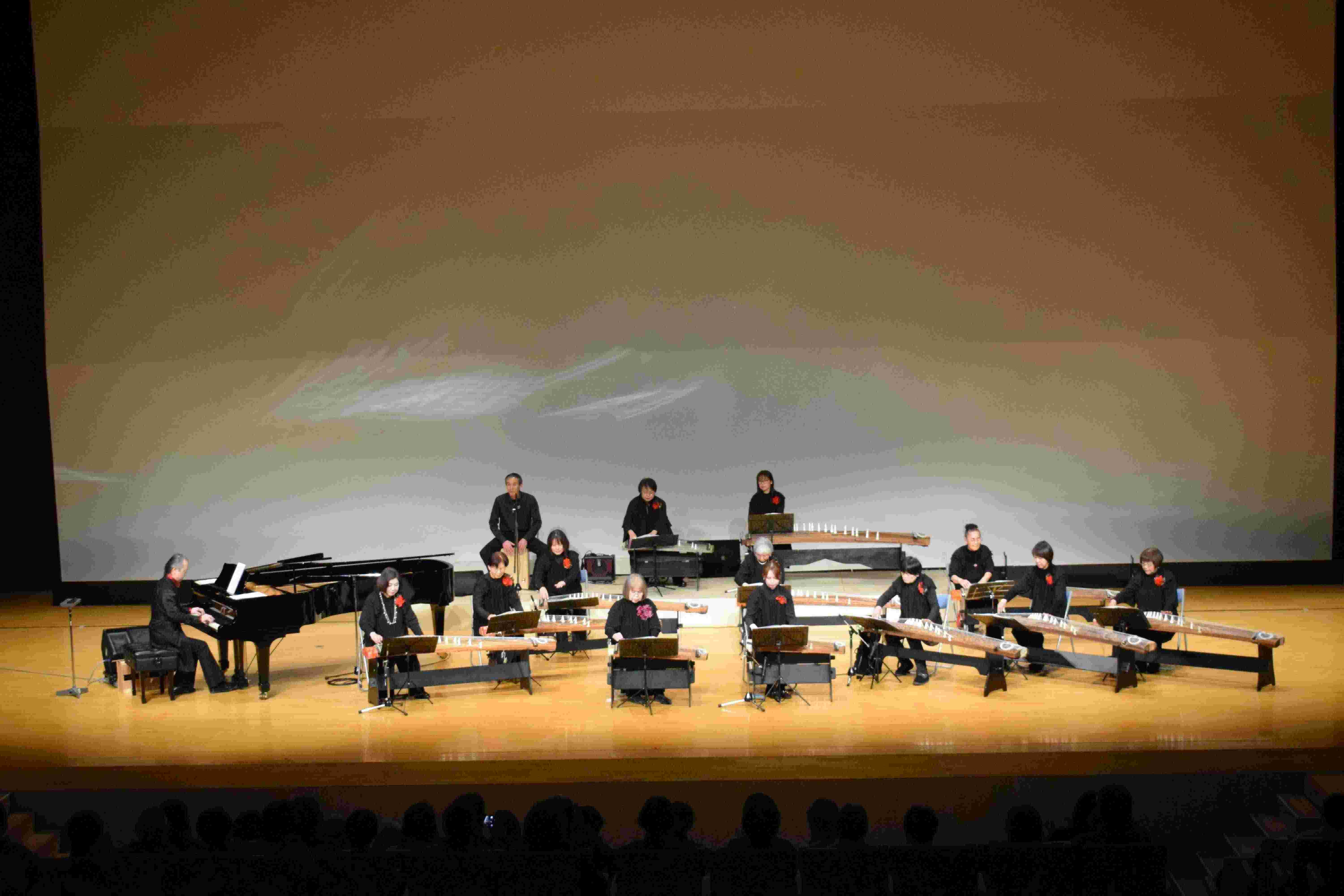 「小島太郎&箏アンサンブル千鳥 箏が奏でるJAZZの世界」 2月23日(日)ワンコインコンサートが行われました。 1部 オンザ サニーサイドオブストリート ブルームーン 枯葉 太陽がいっぱい キサスキサスキサス コーヒールンバ 聖者が街にやってくる 2部 アラウンド ザ ワールド ムーンライト セレナーデ キャラバン 黒いオルフェ マイアミビーチ ルンバ ある恋の物語 センチメンタル ジャーニー バケーション 楽しく、馴染みのある曲が続きます。 ボンゴの小島さん(小島太郎さんとは偶然同じ苗字だそうです)のリズムでラテンの音楽がさらに盛り上がります。 お客様も手拍子で参加され楽しまれました。 演奏後は交流会があり、小島太郎さんの楽しいお話しを、たくさん伺うことが出来ました。 お客様から感想、質問もたくさんいただきました。 「今日の演奏会の楽譜はどのようなっているのか?五線紙の譜面?お琴の譜面?」 「パート別に音をもう一度聞かせてほしい」 「ベース音のお琴がとても珍しい。」 などなど。 洋楽の曲を和楽器で演奏する難しさ、和楽器ならではの表現の仕方などお話し頂けました。 最後にもう一曲、特別に演奏してくださいました。 お琴の魅力が満載の演奏会でした。 ワンコインコンサート、過去最多のお客様にご来館いただきました。ありがとうございました。