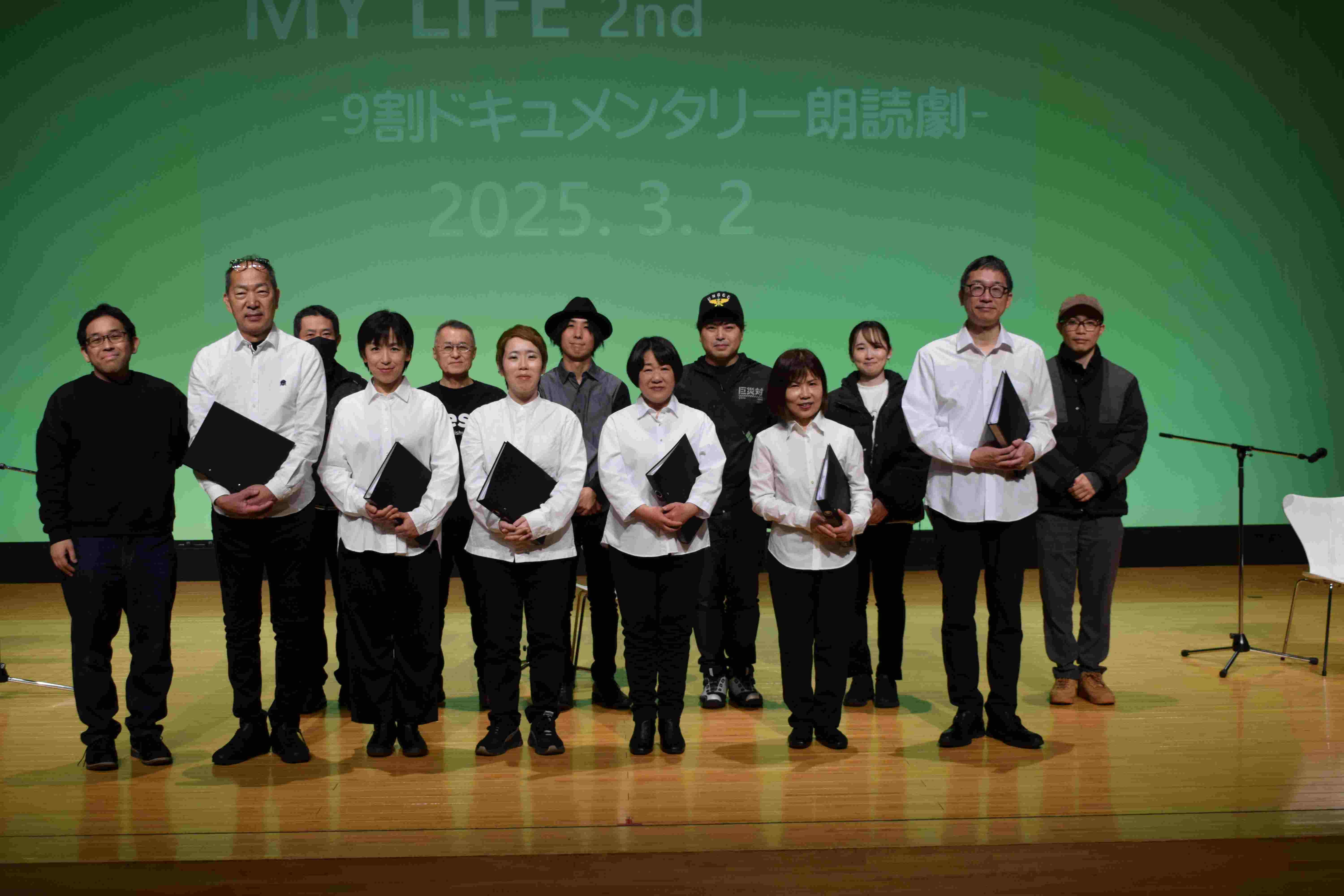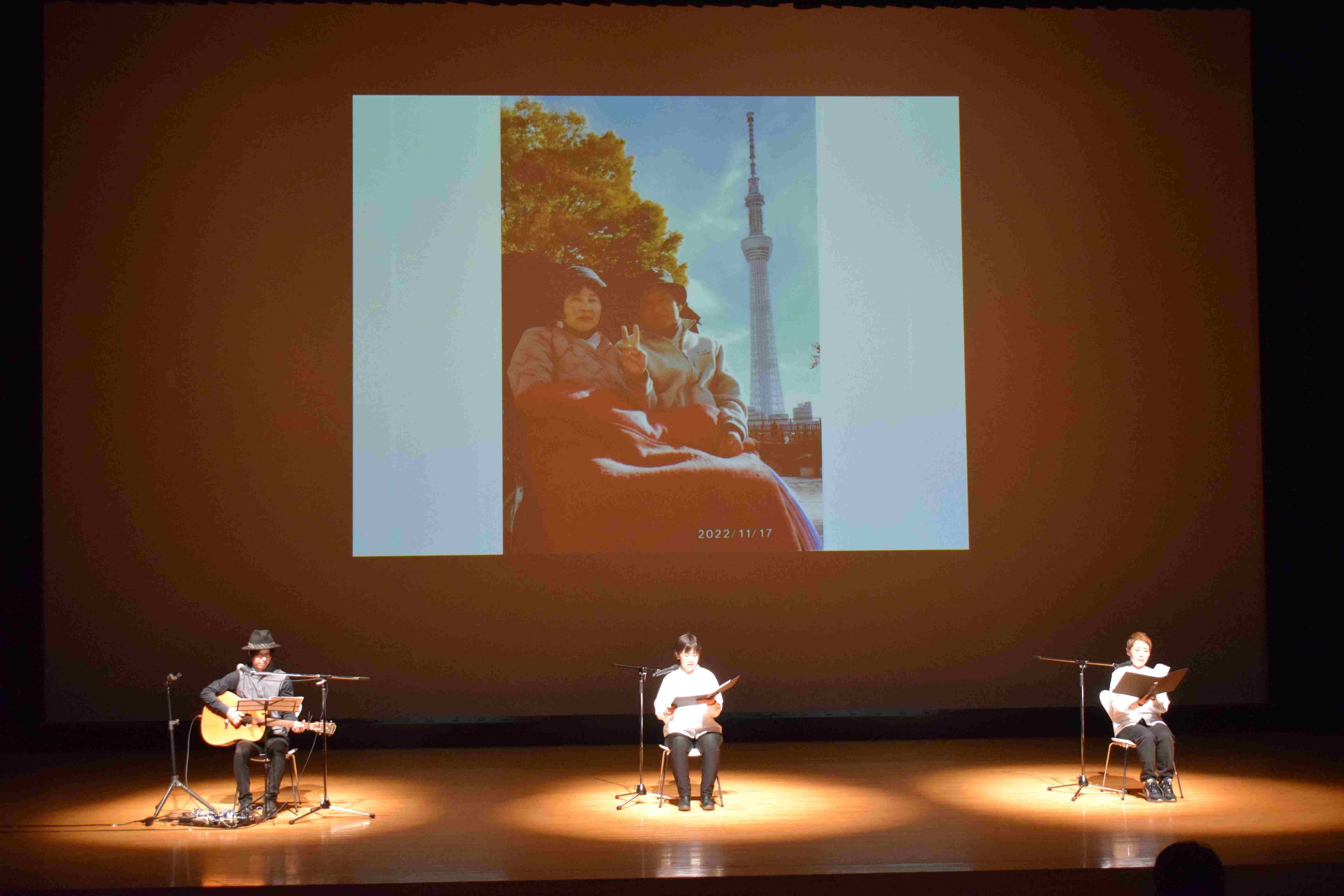 ー9割ドキュメンタリー朗読劇ー2nd このまちに暮らすひとびと」 短編朗読劇3作品が上演されました。 子供の頃に離れ離れになった父と再会して時間を共有する話 妻を愛し大切に想い、寄り添う男性のお話 優しい夫の病気と自分の病気に真っ直ぐ向き合う女性のお話 どれも、この地域で日常生活を送っている方のお話で、心に響くお話しでした。 演劇集団esさんの朗読と、ミュージシャンのHIROさんの演奏と歌で、感動的な朗読劇でした。