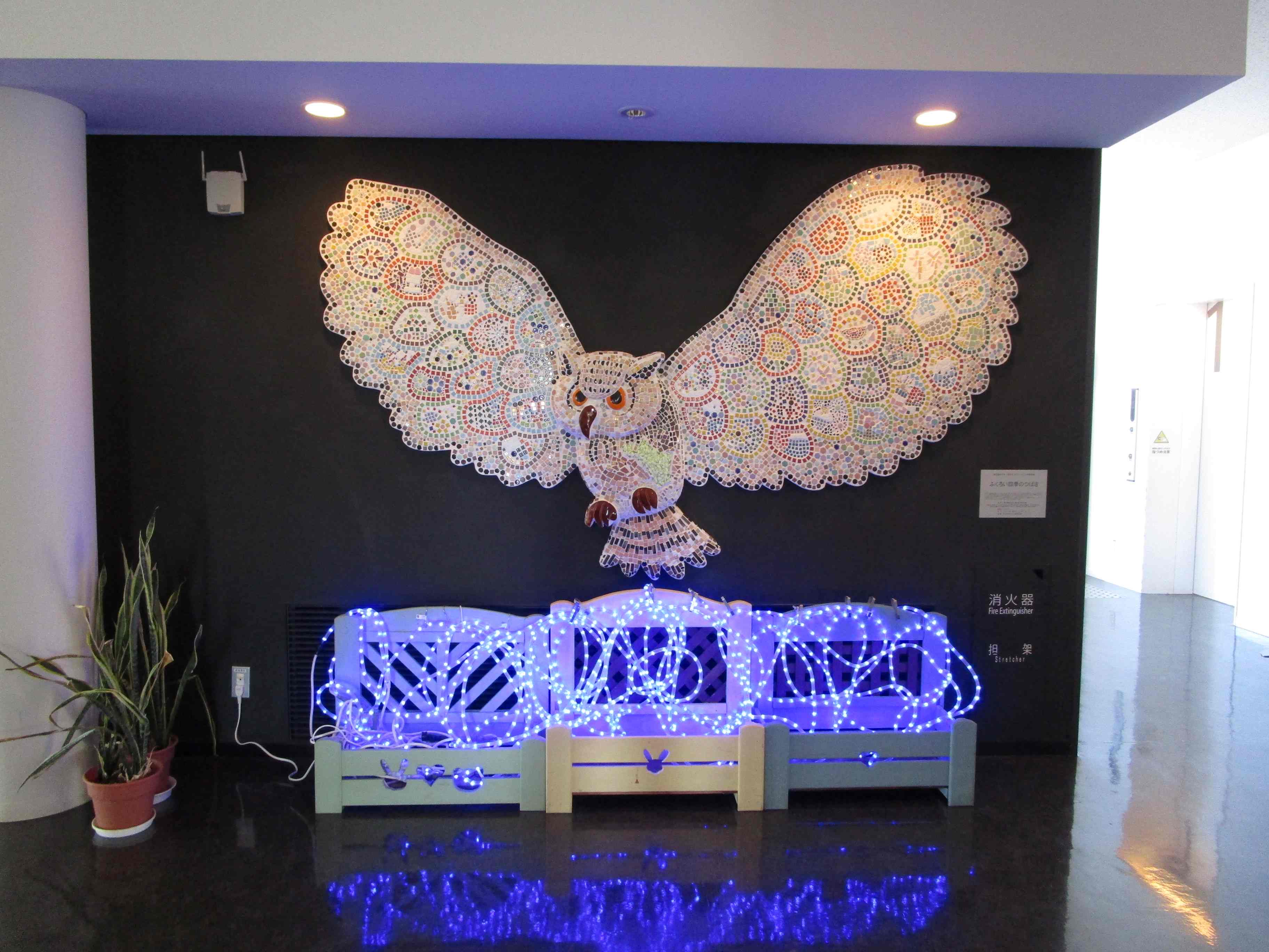 東京藝術大学X袋井市パブリックアート設置事業 「ふくろい四季のつばさ」 作品の大きな翼の羽根一枚一枚は、2024年に開催した市民ワークショップ「モザイク画でパブリックアートを作ろう!」にて小・中学生が制作しました。 「袋井市の四季」をテーマに、風景や自然、産物、文化、思い出などを表現した子どもたちの作品50点は、東京藝術大学の学生と教員のてによって一つの大きな作品となりました。 袋井市の子どもたちがパブリックアート作品に関わることで、地域について知り、学び愛情が育まれること、そして、多くの方に作品をみていただき、芸術を楽しみ、身近になることを願っています。 壁面大きく羽ばたく、迫力あるこの作品を、是非ご覧いただきたいと思います。
