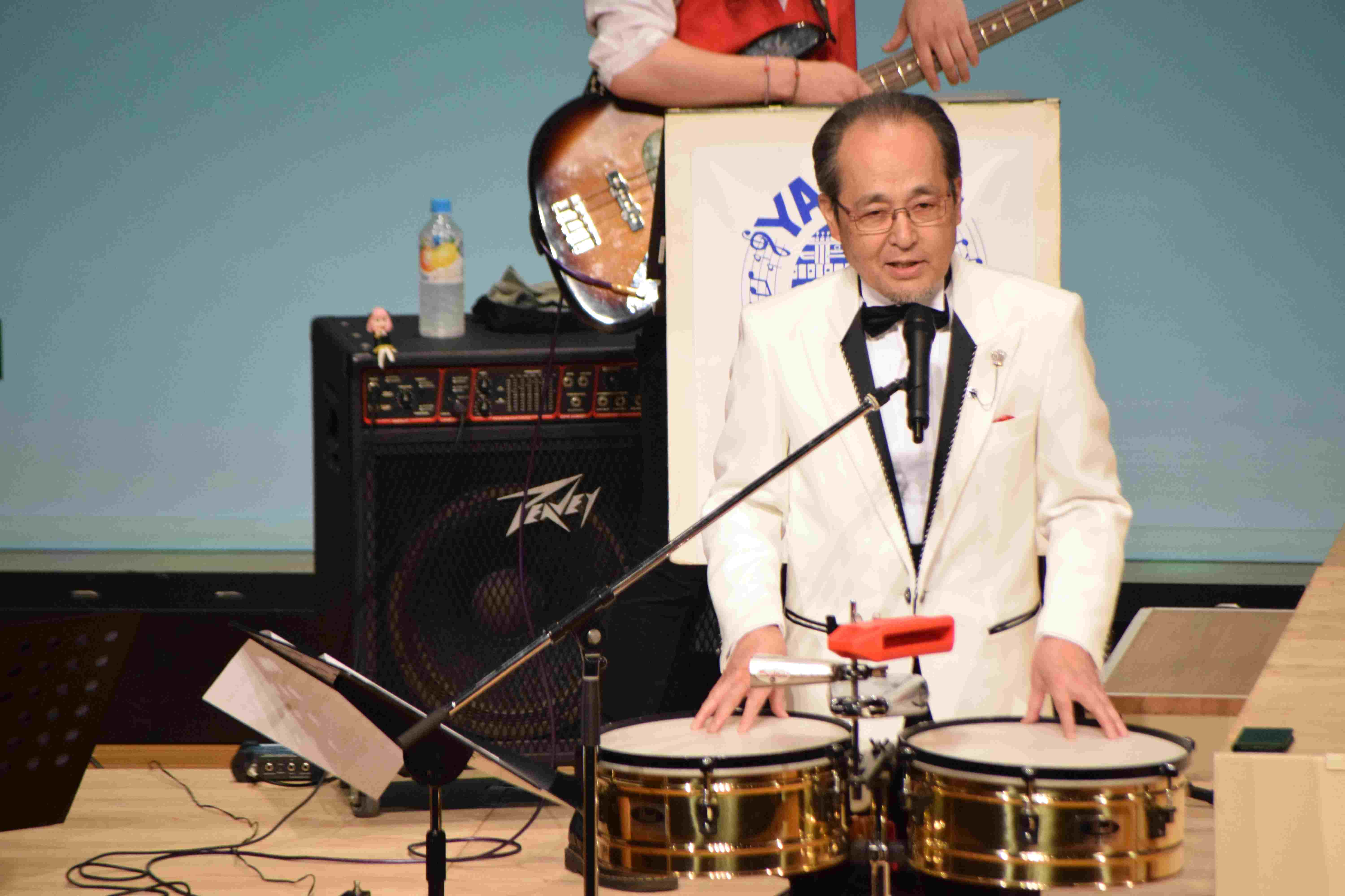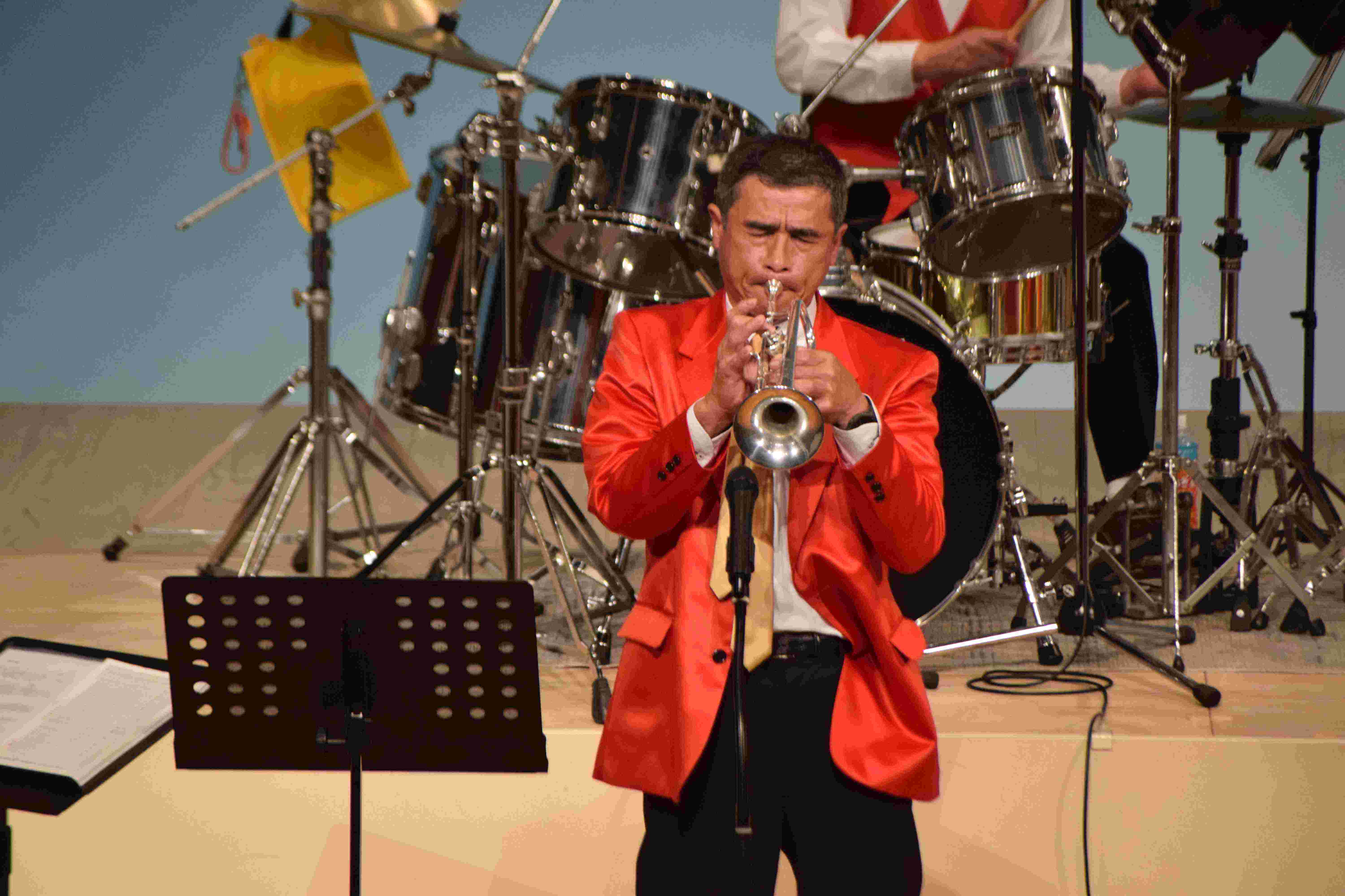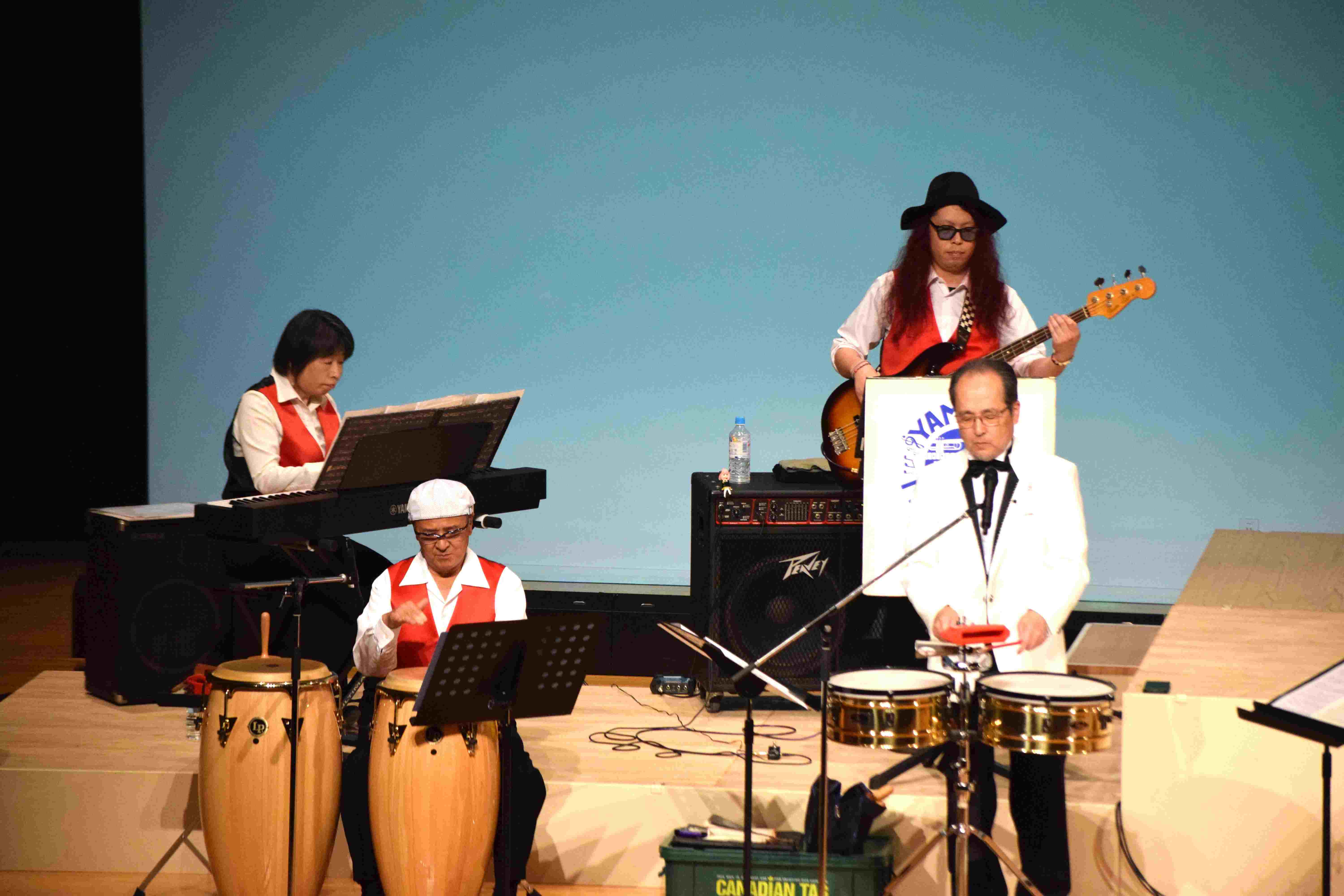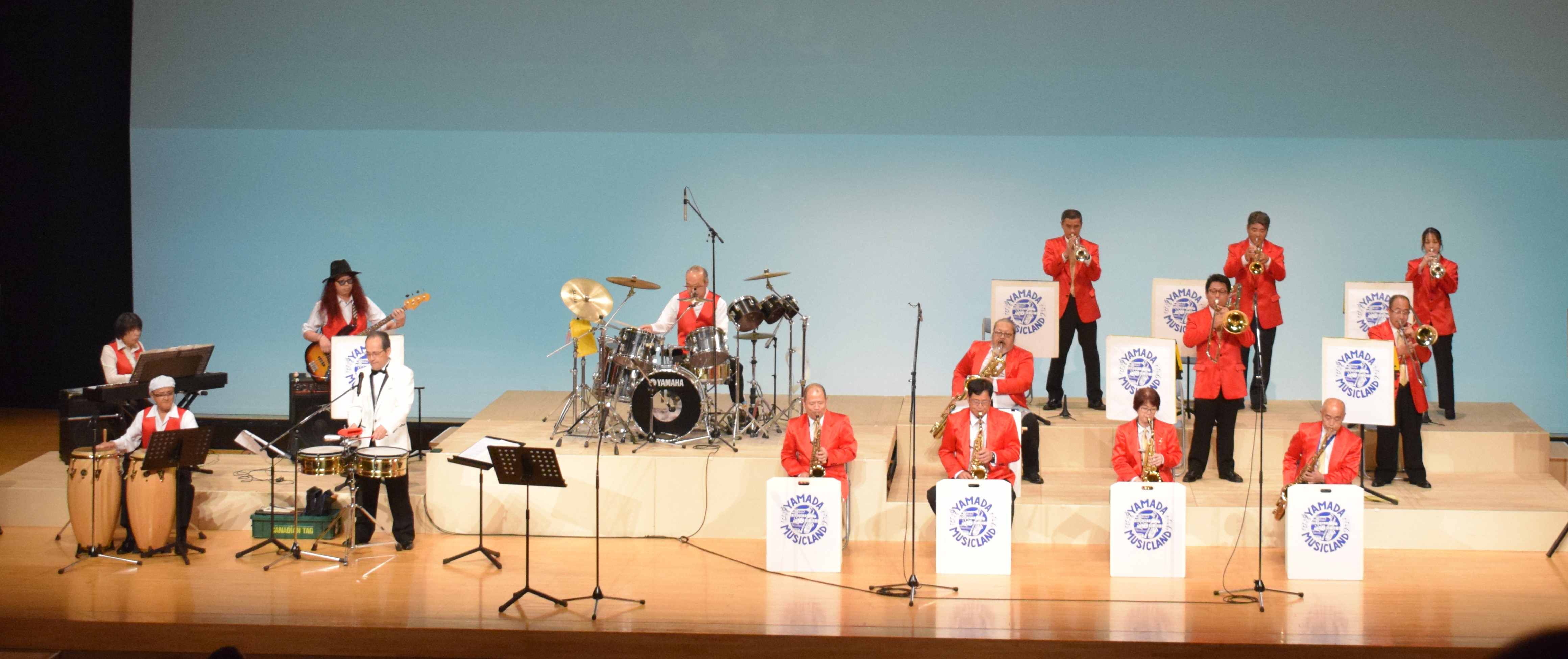 「ヤマダ・ミュージックランド コンサート」が行われました。 山梨県より「ヤマダ・ミュージックランド」の皆様をお迎えしました。 結成30周年を迎えた社会人ラテンビックバンドです。 「マンボNo5」 「エル・クンバンチェロ」「セレソ・ローサ」など、ラテン音楽の名曲を次々と演奏していただきました。 迫力ある演奏で、お客様は手拍子でリズムを取り、会場全体が一体となって盛り上がりました。 山田さんの楽しいお話で笑いがあふれ、さらに楽しく、熱気あふれるコンサートでした。
